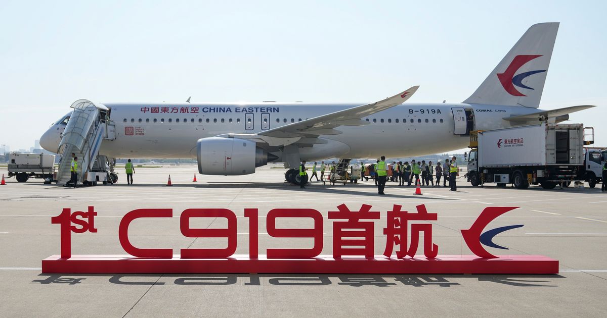 A Chinese C919 commercial passenger jet has arrived in Hong Kong in the Chinese-made aircraft’s first foray outside of mainland China.