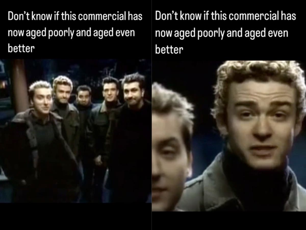 A clip from the 2001 Budweiser commercial – which features Timberlake and his former boy band, *NSYNC – recently went viral on TikTok, as viewers professed that the PSA “aged poorly”. In the commercial, *NSYNC members Timberlake, Lance Bass, Joey Fatone, Chris Kirkpatrick, and JC Chasez are seen standing outside on the front porch of a house.