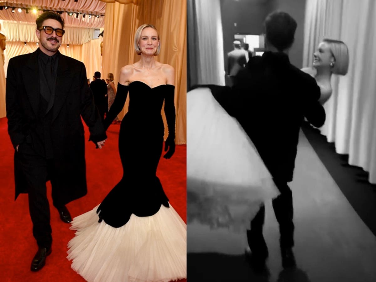 In a posted to TikTok, the Mumford and Sons frontman was seen carrying Mulligan in his arms as “I’m Just Ken” from the Barbie film played in the background. The Promising Young Woman star giggled while her husband carried her through the hallway, dodging the oncoming traffic of Oscars attendees.