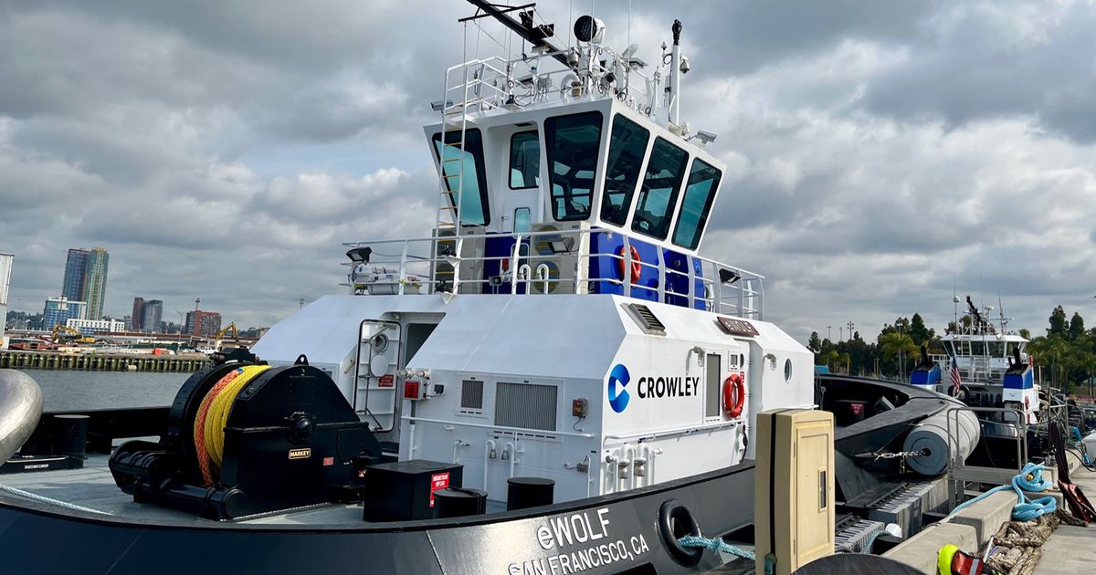 The nation’s first all-electric tug boat has docked at the Port of San Diego and expects to begin emissions-free operations in about a month.
