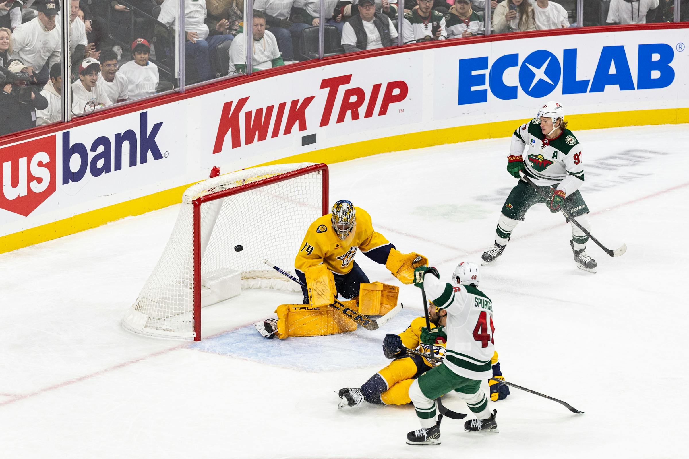 Not until Kaprizov set up Spurgeon did the Wild finally overcome the Predators, this after a clutch late stop by Gustavsson on Zachary L’Heureux helped extend the action.